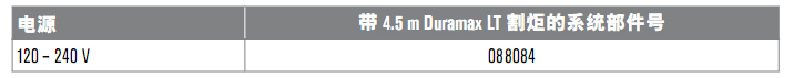 • 電(diàn)源,4.5 m Duramax LT 手持割炬,帶标準易損件≤ ↕ε(jiàn),4.5 m 工(gōng)件(jiàn)夾